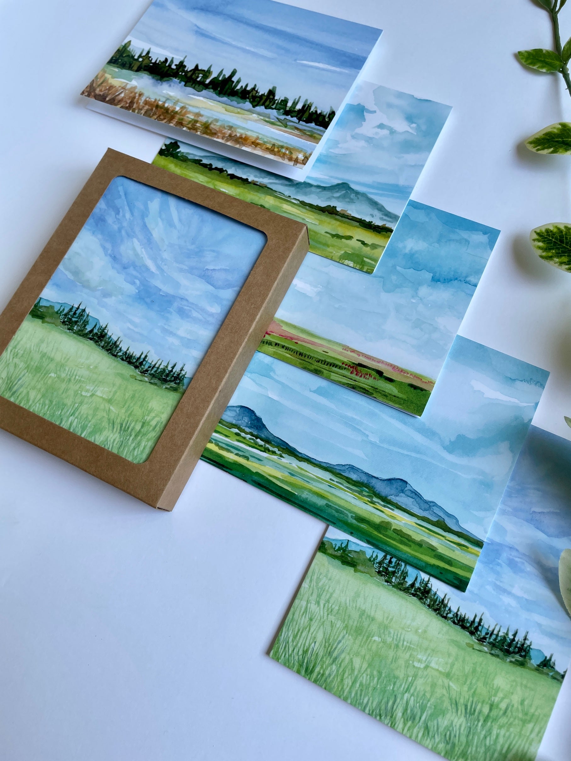 10 beautiful notecards with envelopes, with five different designs. Each card is a print of one of my original watercolor paintings. These cards come directly from the artist to you!