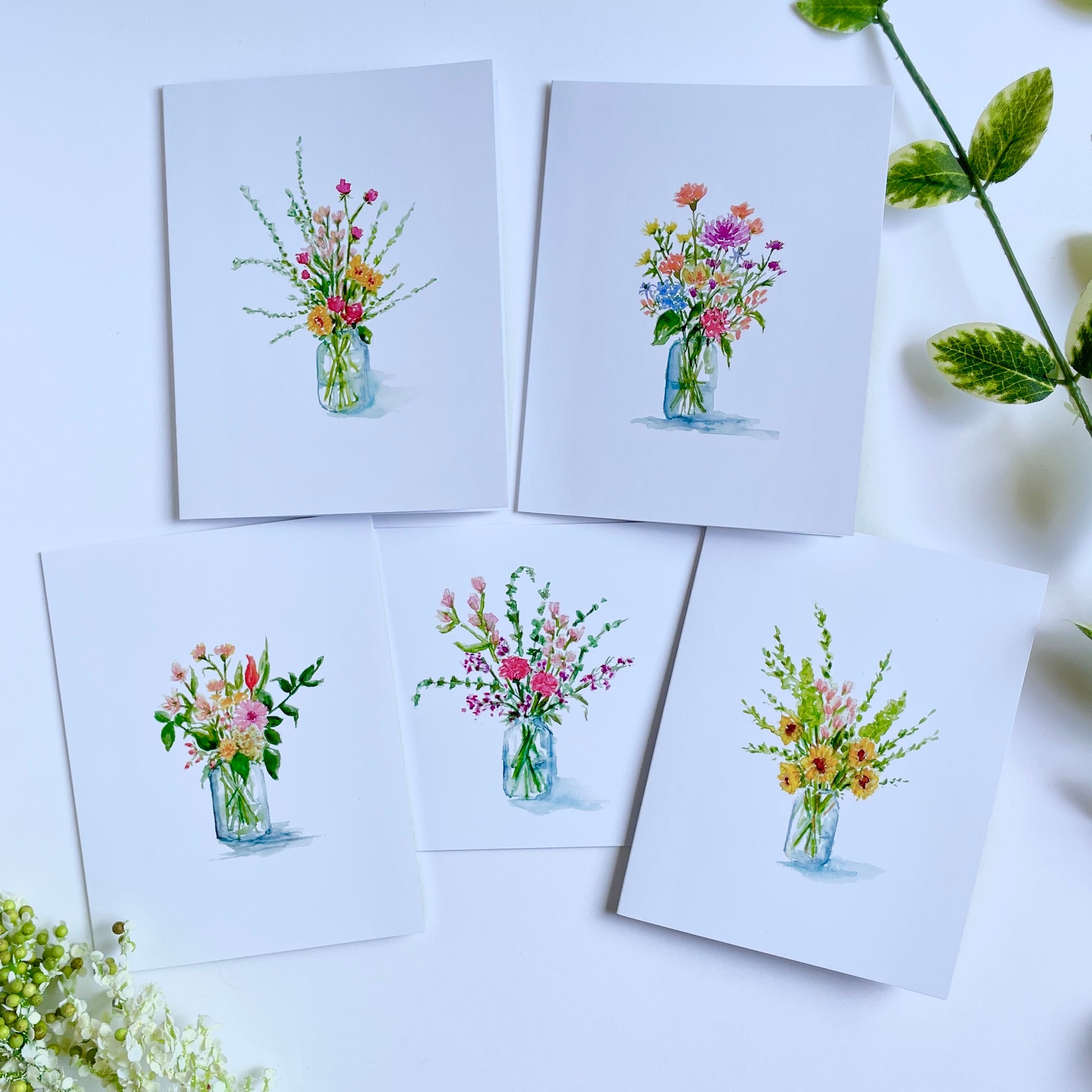 10 beautiful notecards with envelopes, with five different designs. Each card is a print of one of my original watercolor paintings. These cards come directly from the artist to you!